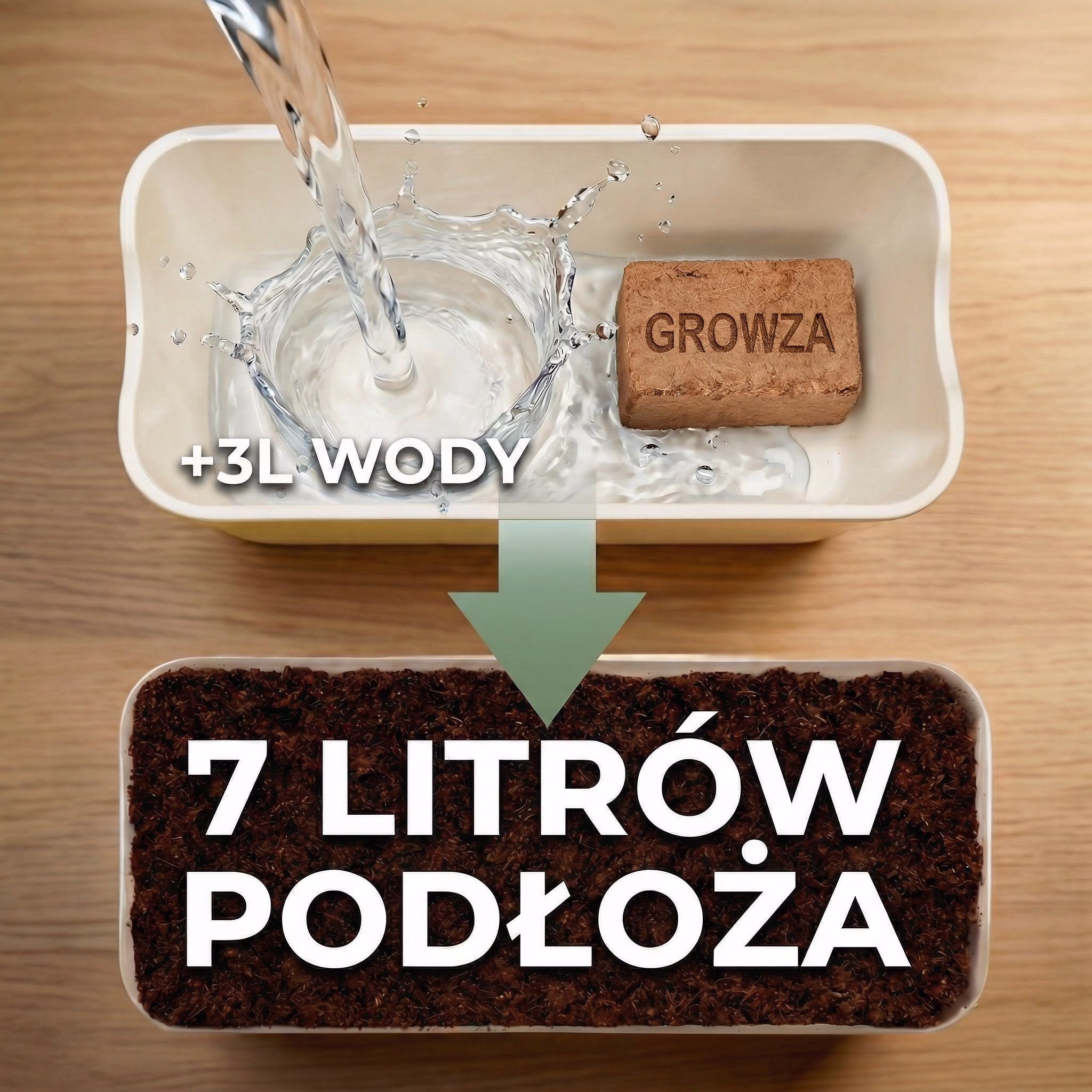 Aby uzyskać pełne 7 litrów gotowego podłoża, wystarczy zalać jeden bloczek 3 Litrami wody 🪣